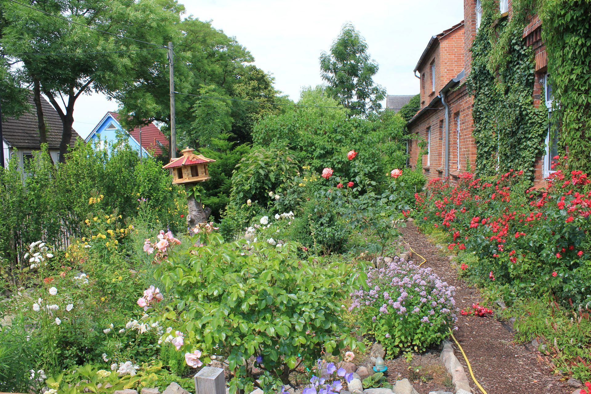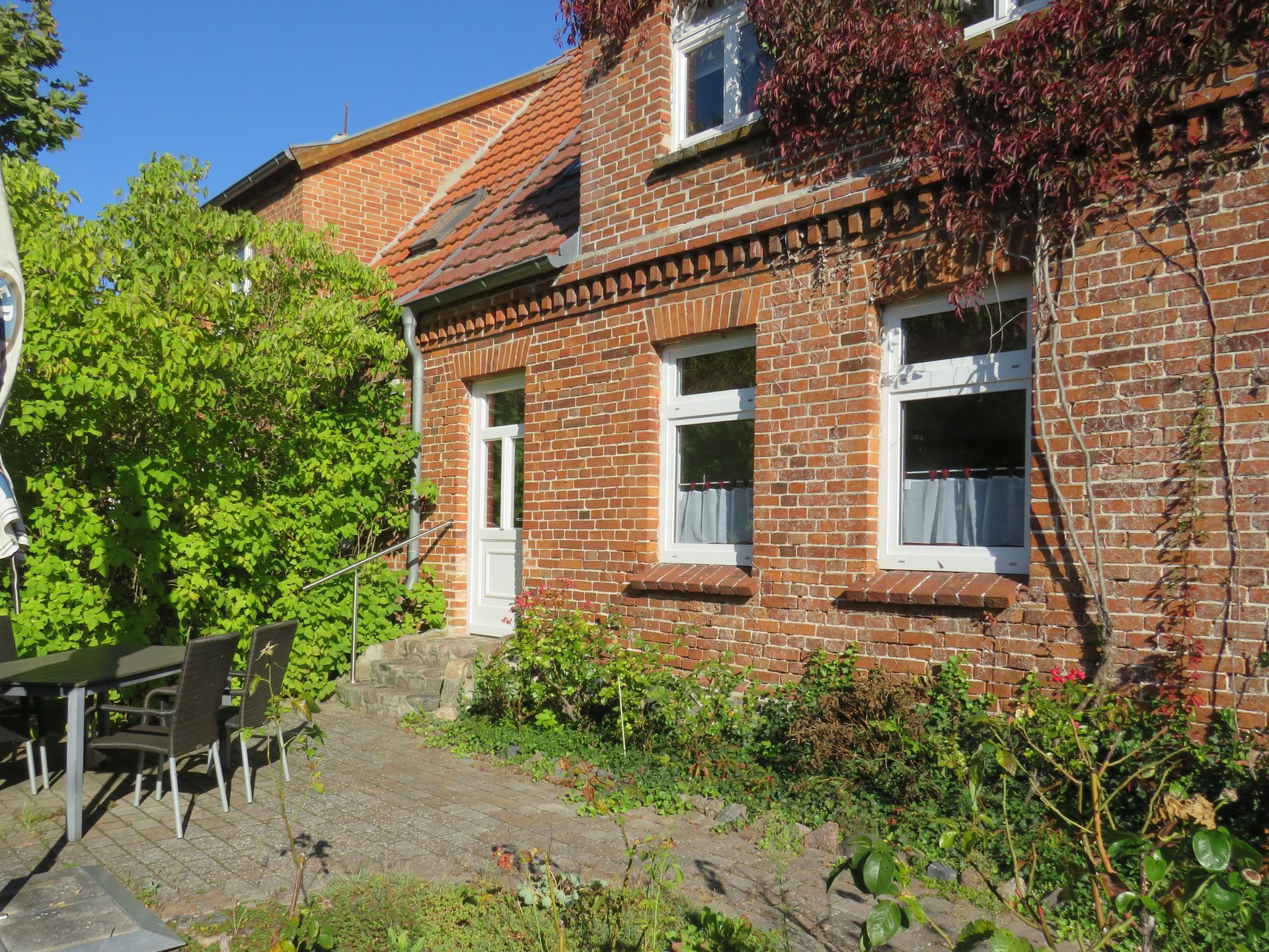 Zusätzlich gehört zur Ferienwohnung eine separate Terrasse inmitten eines Blumengartens.