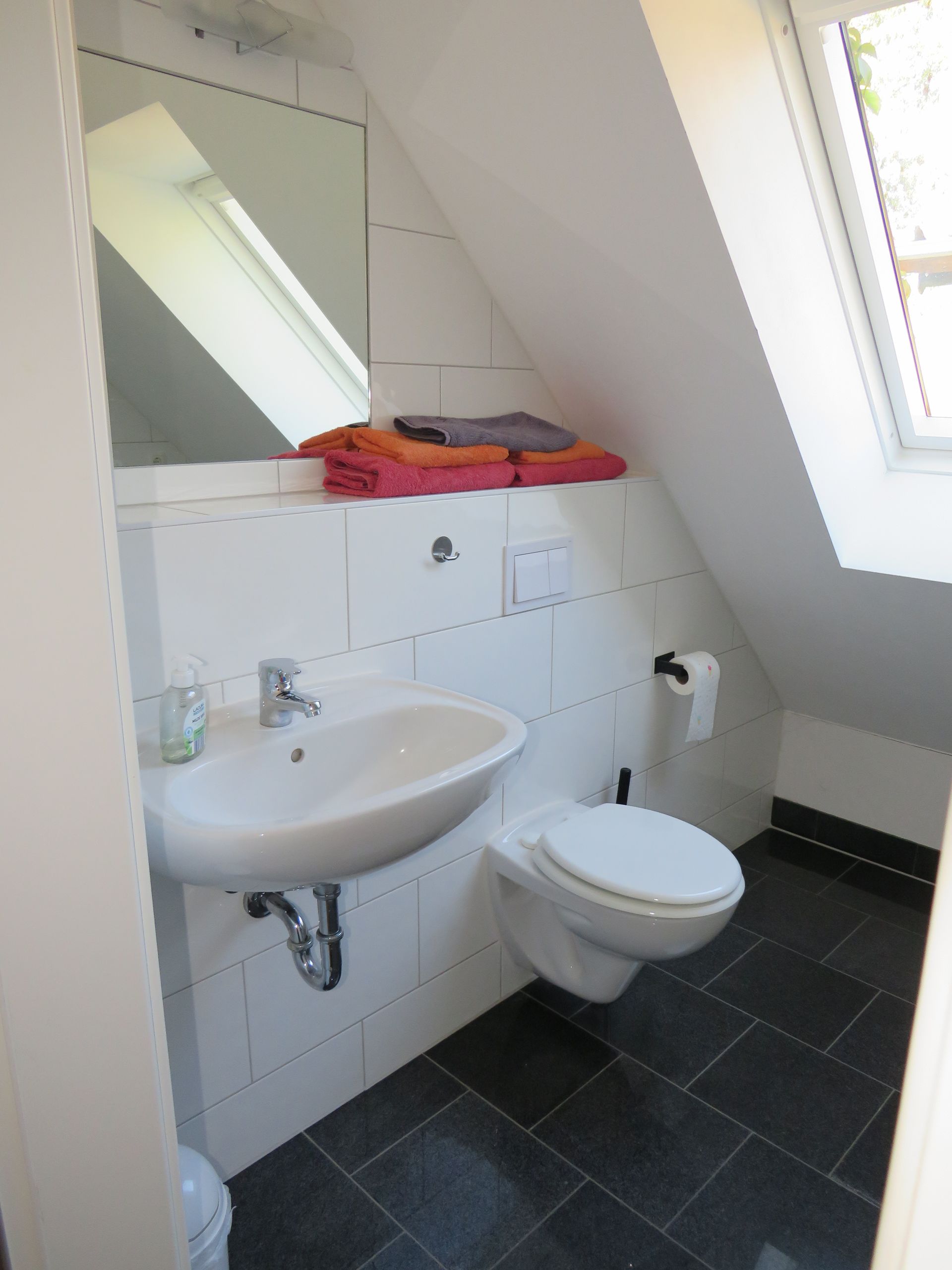 Das Badezimmer ist mit einer modernen Dusche ausgestattet.